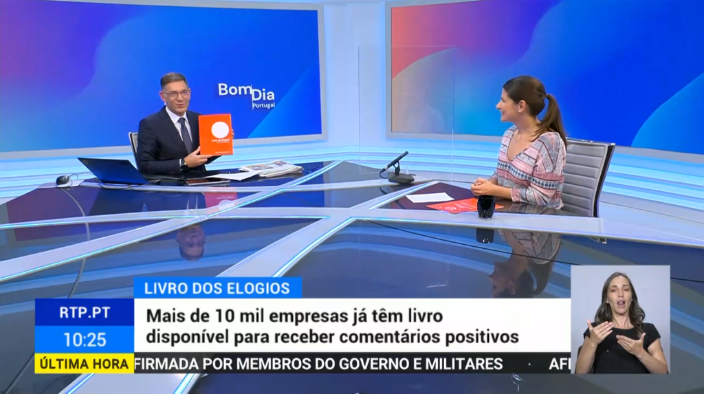 No passado domingo, dia 15 de agosto de 2021, a equipa do Livro de Elogios teve o prazer de marcar presença no programa informativo Bom dia Portugal. Apresentado pelo jornalista e apresentador da RTP (Rádio e Televisão de Portugal), Daniel Catalão., este programa é um programa de informação que dedica espaços específicos às notícias da atualidade nacional e internacional.